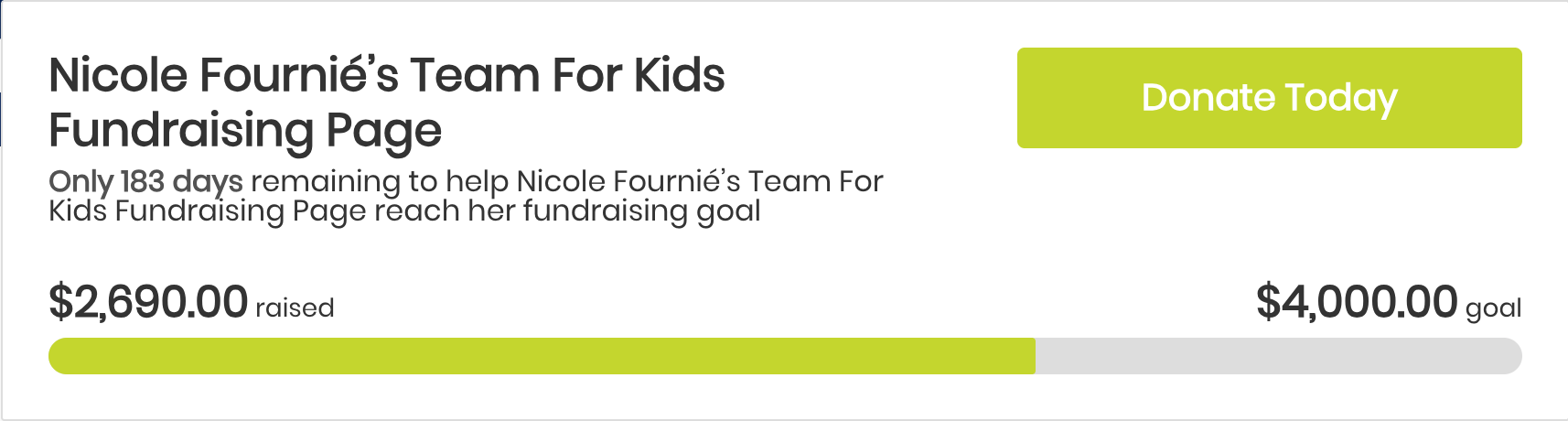 Your generous gift supports NYRR’s free youth and community programs, which provide thousands of children nationwide with the tools to lead healthy, active lives. I am raising $4,000 for Team for Kids. I know these are your hard-earned dollars, and that there are many causes worthy of our support (now more than ever). If you feel called to give generously this season, this is one option to consider.